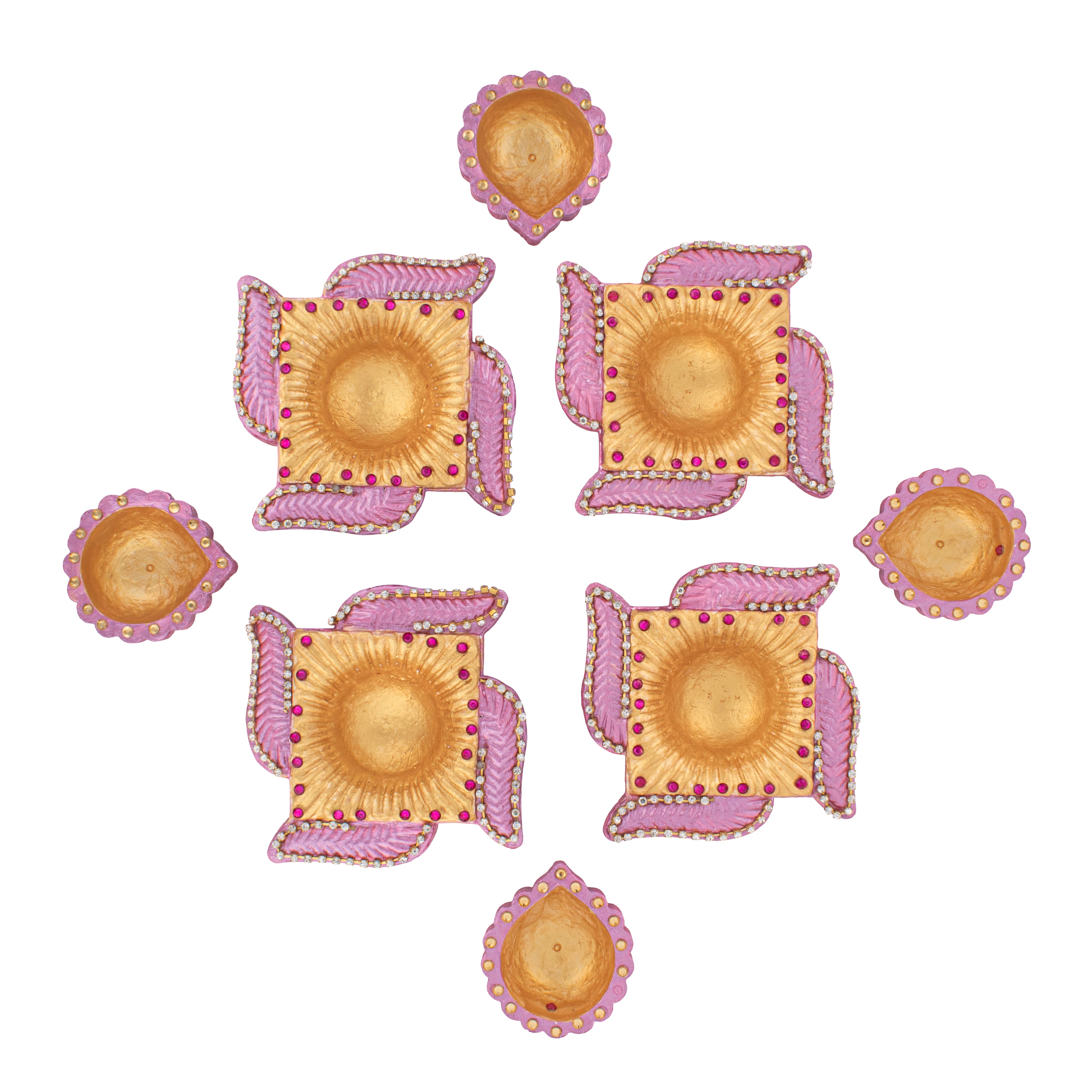 Decorated Terracotta Diya Assorted Shapes Pastel Pink 10pc