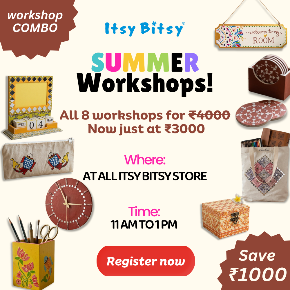 Join all 8 creative workshops designed for beginners and explore a wide range of art forms: