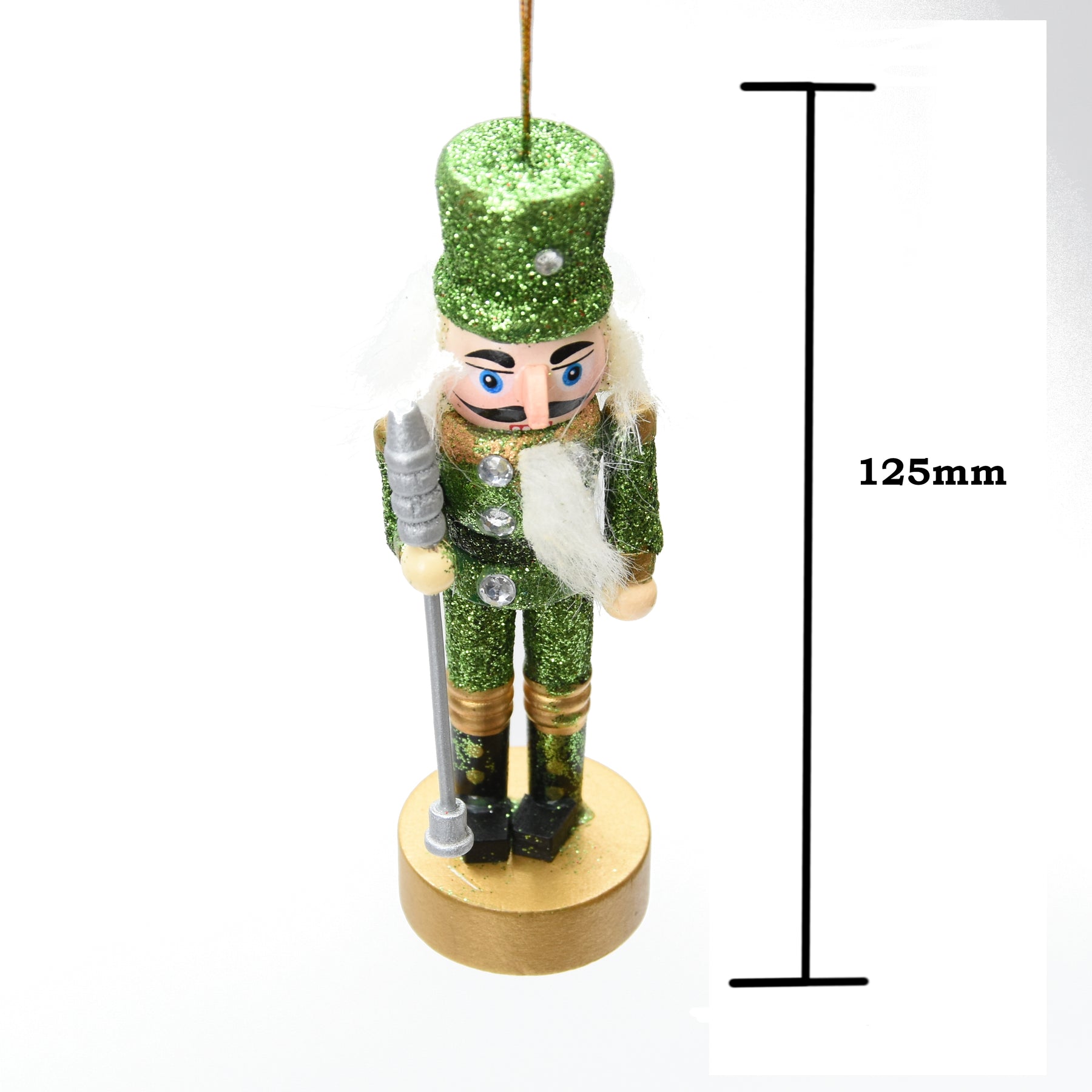 Christmas Decoration - Mini Nutcracker, Green Glitter, 13 CM