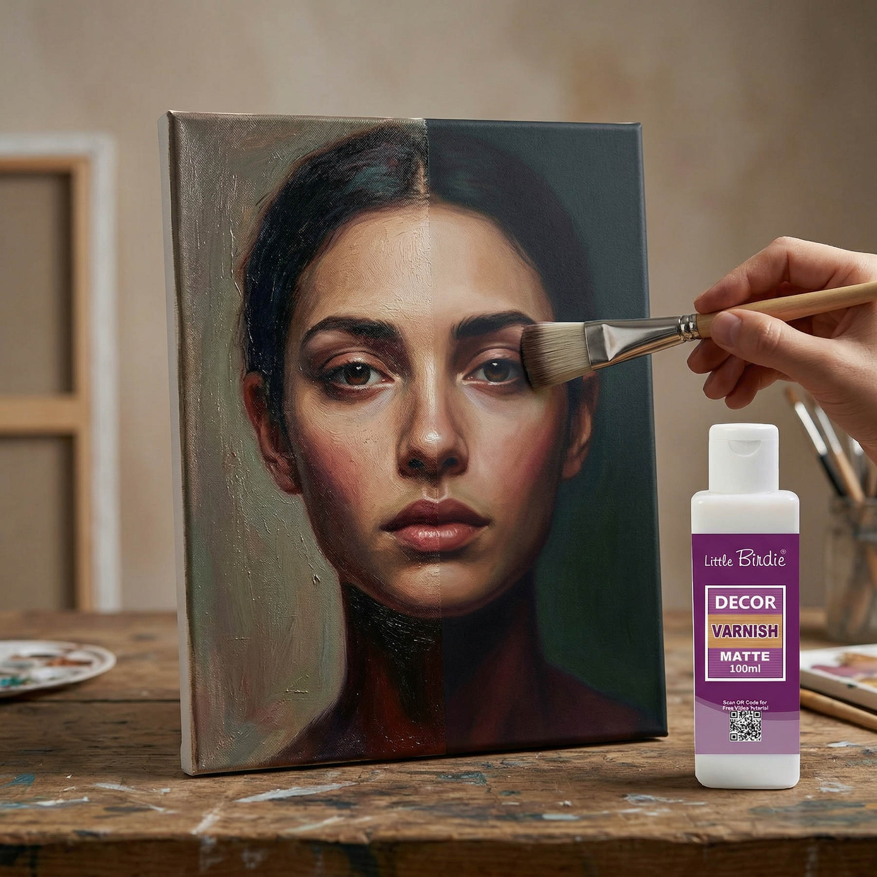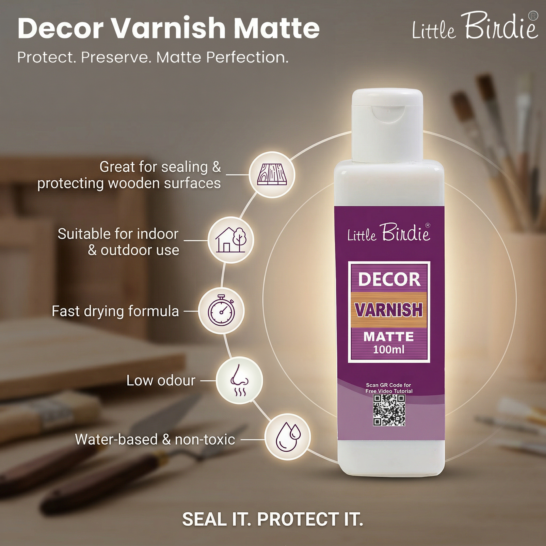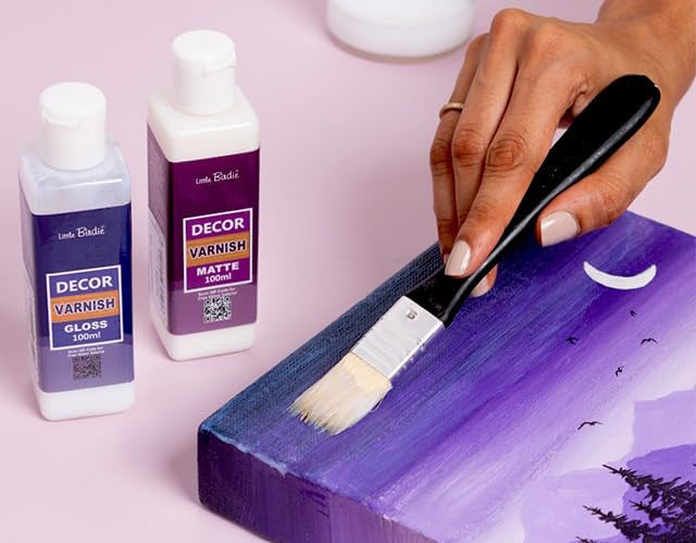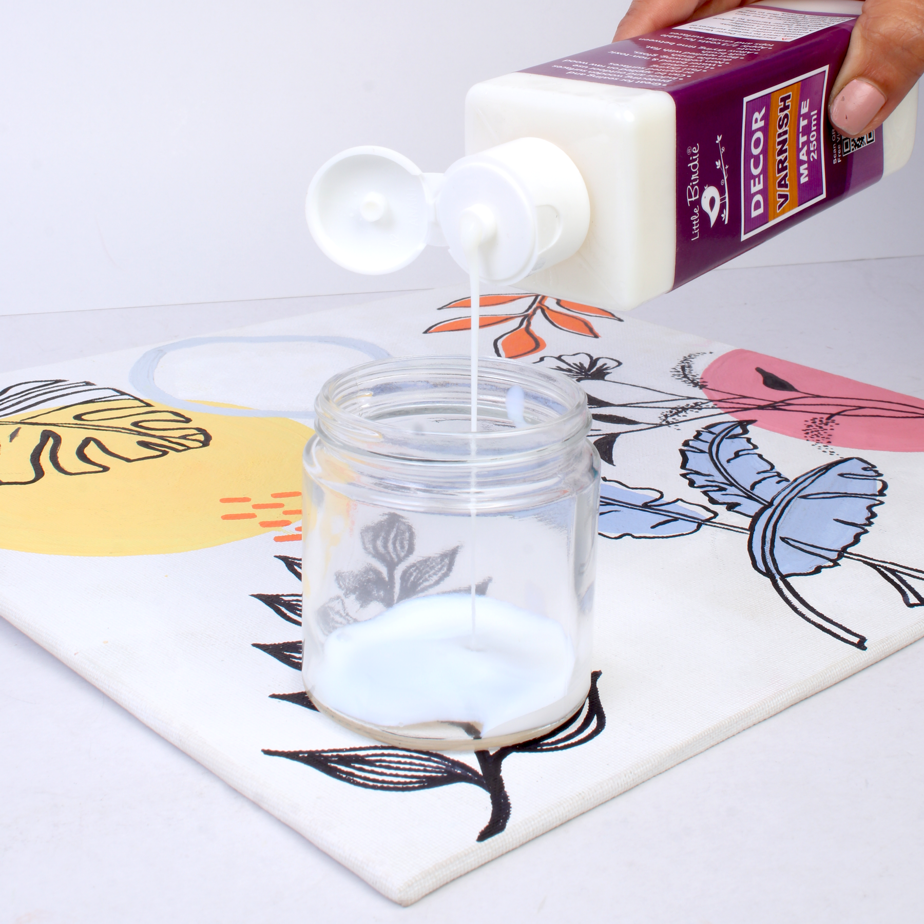 Decor Varnish comes in 2 variants - Glossy and Matte. Glossy gives brightness and shine to your work whereas Matte gives a natural look without a shiny effect.